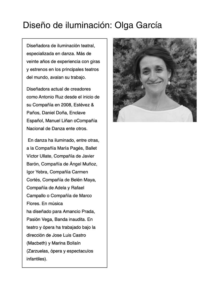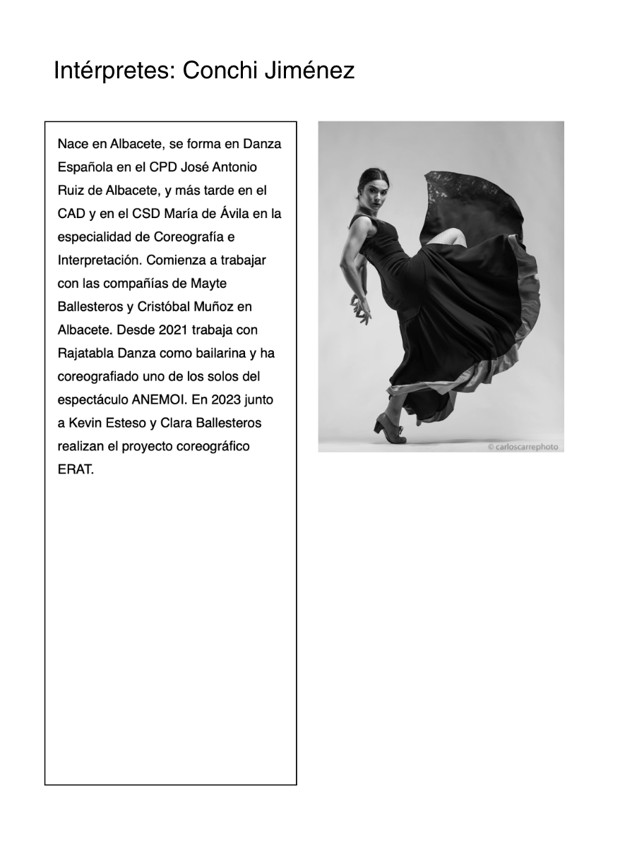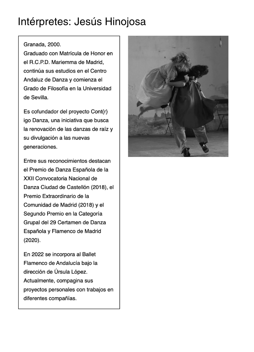 Coreografía e interpretación: Yoel Vargas, Ana del Rey, Jesús Hinojosa, José Ángel Capel, Cristina Cazorla, Conchi Jiménez y Esther Tablas