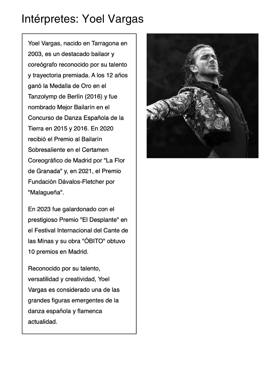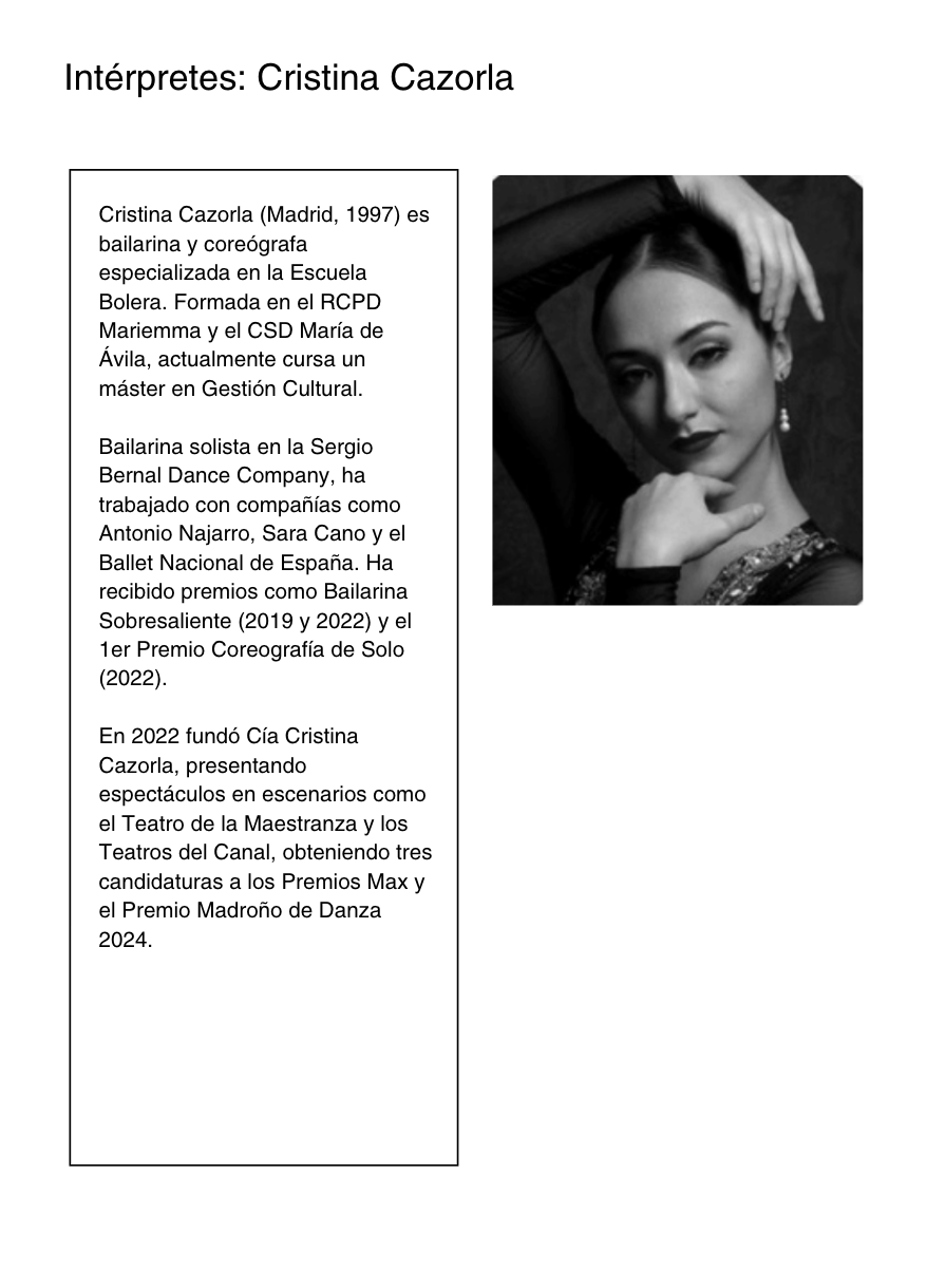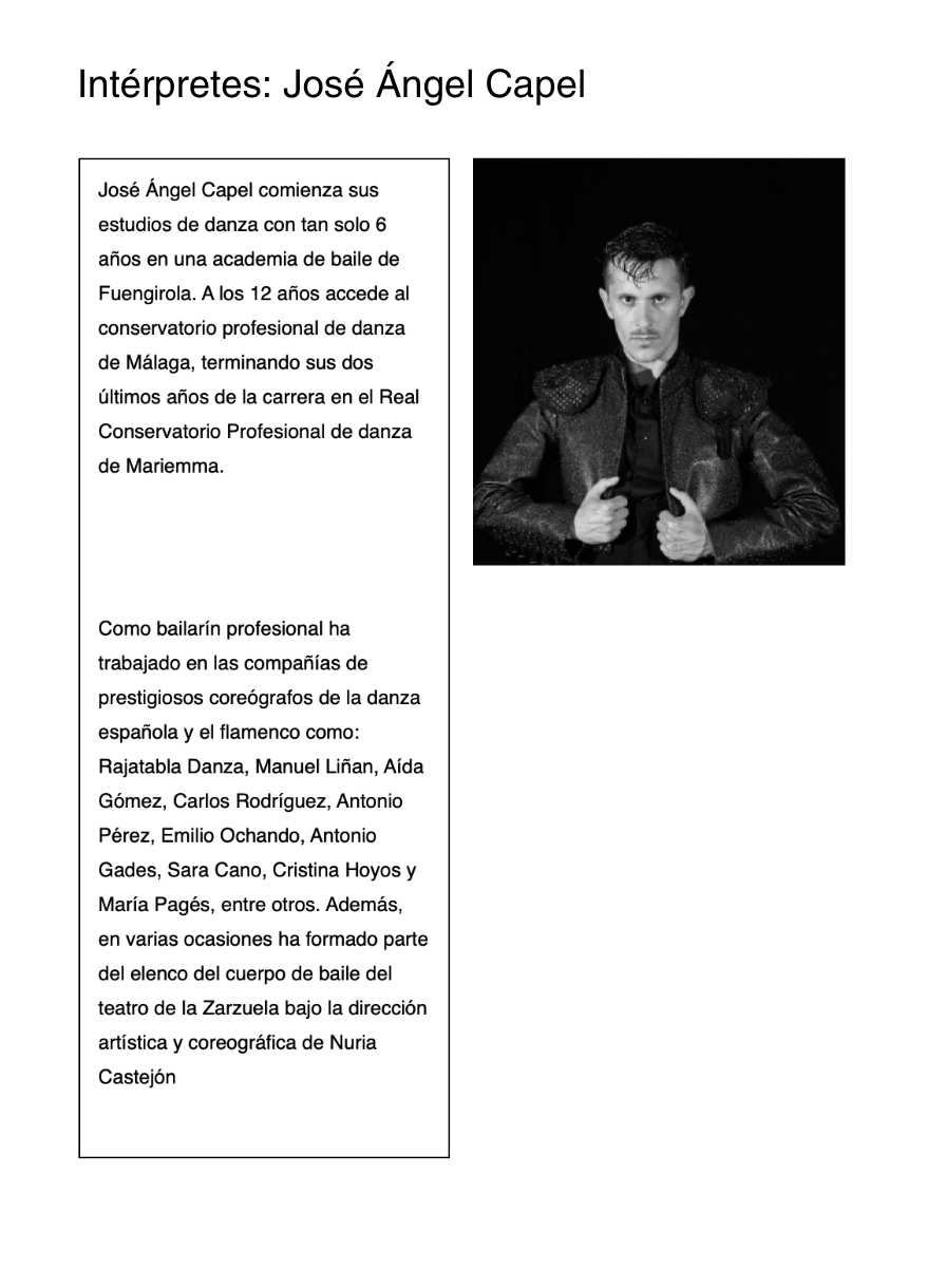 Coreografía e interpretación: Yoel Vargas, Ana del Rey, Jesús Hinojosa, José Ángel Capel, Cristina Cazorla, Conchi Jiménez y Esther Tablas